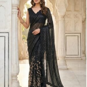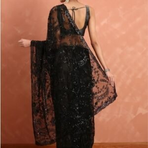 Black Net Sequins Saree
