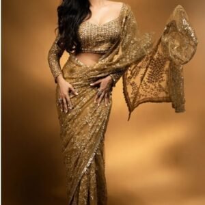 Antique Gold Net Designer Saree