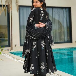 Rayon Printed Anarkali Kurta and Pant Black