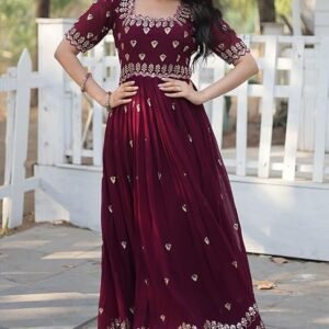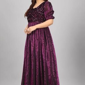 Voilet Georgette Anarkali Gown with Full Sleeves