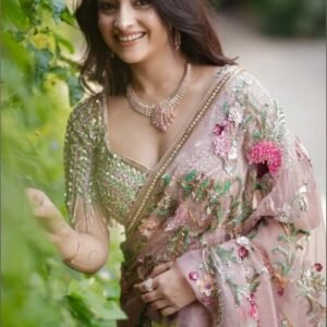 Pink Sequins Embroidered Tissue Organza Saree