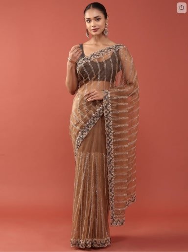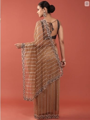 Gold Net Embroidery Saree