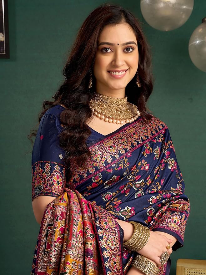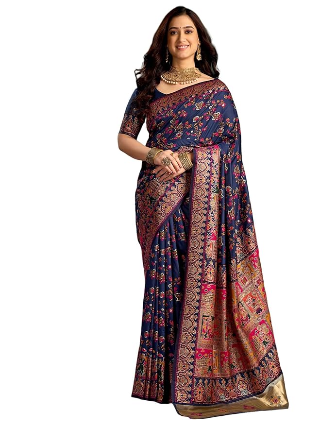 Navy Blue Banarasi Saree with Blouse