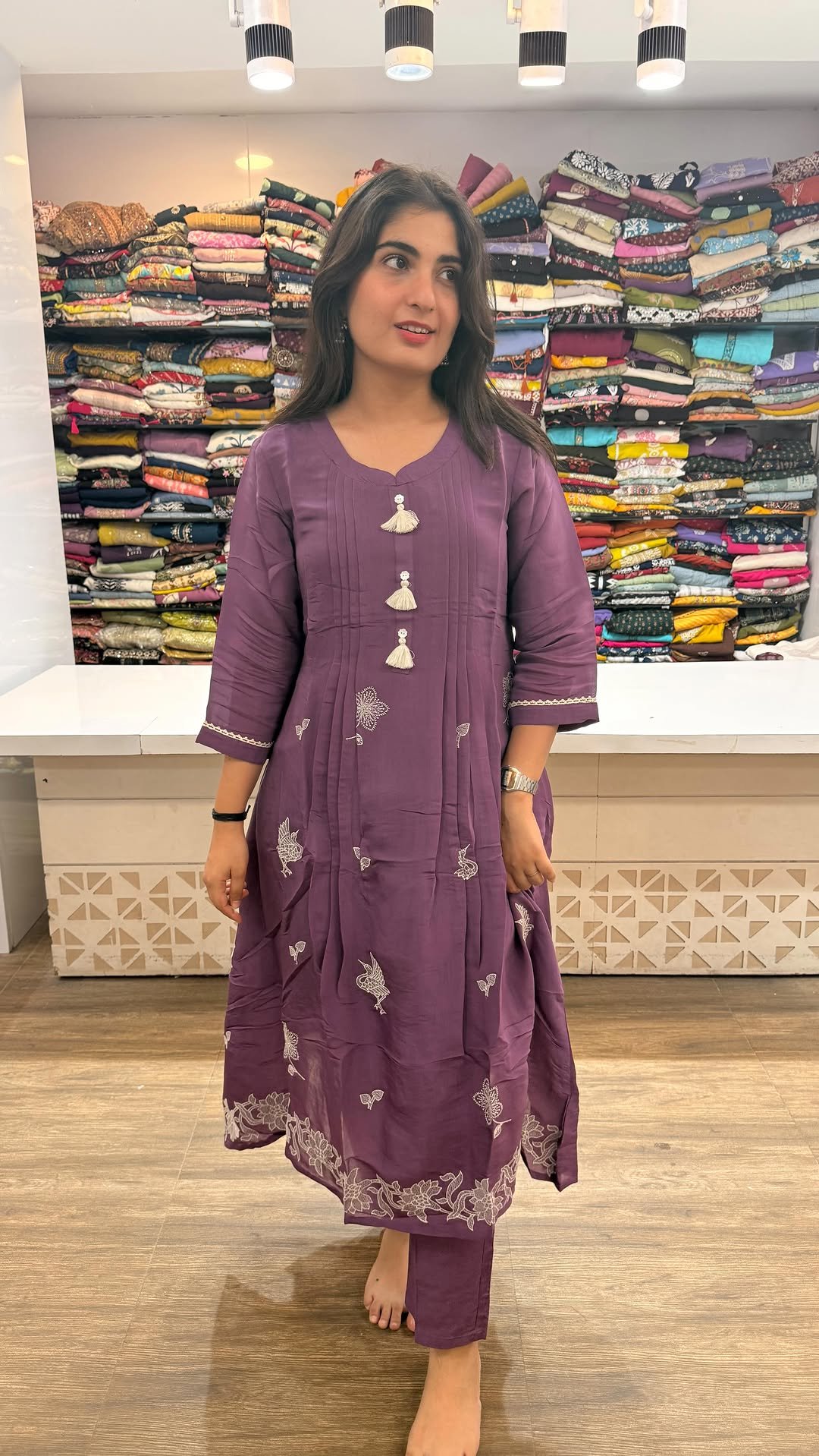 Gorgeous purple shade with refined embroidery
