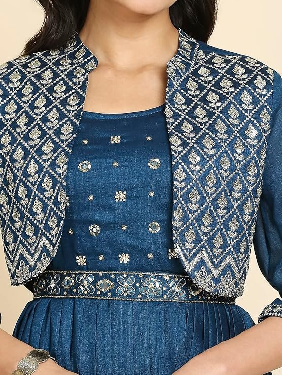 - STAND OUT FROM THE REST: Keeping in mind the latest fashion trends, this designer Kurti is made to help you make a bold fashion statement. The solid Peacock Blue Long Gown dress for women’s Latest Design pattern highlights the color of your choice, which is accented further.