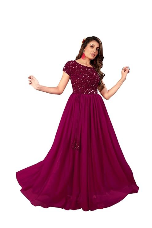 Rebika Trendz Elegant Women’s Gown with Sequins Work | Velvet Bodice & Net Flare | Short Sleeve, Boat Neck | Perfect for Parties & Special Occasions